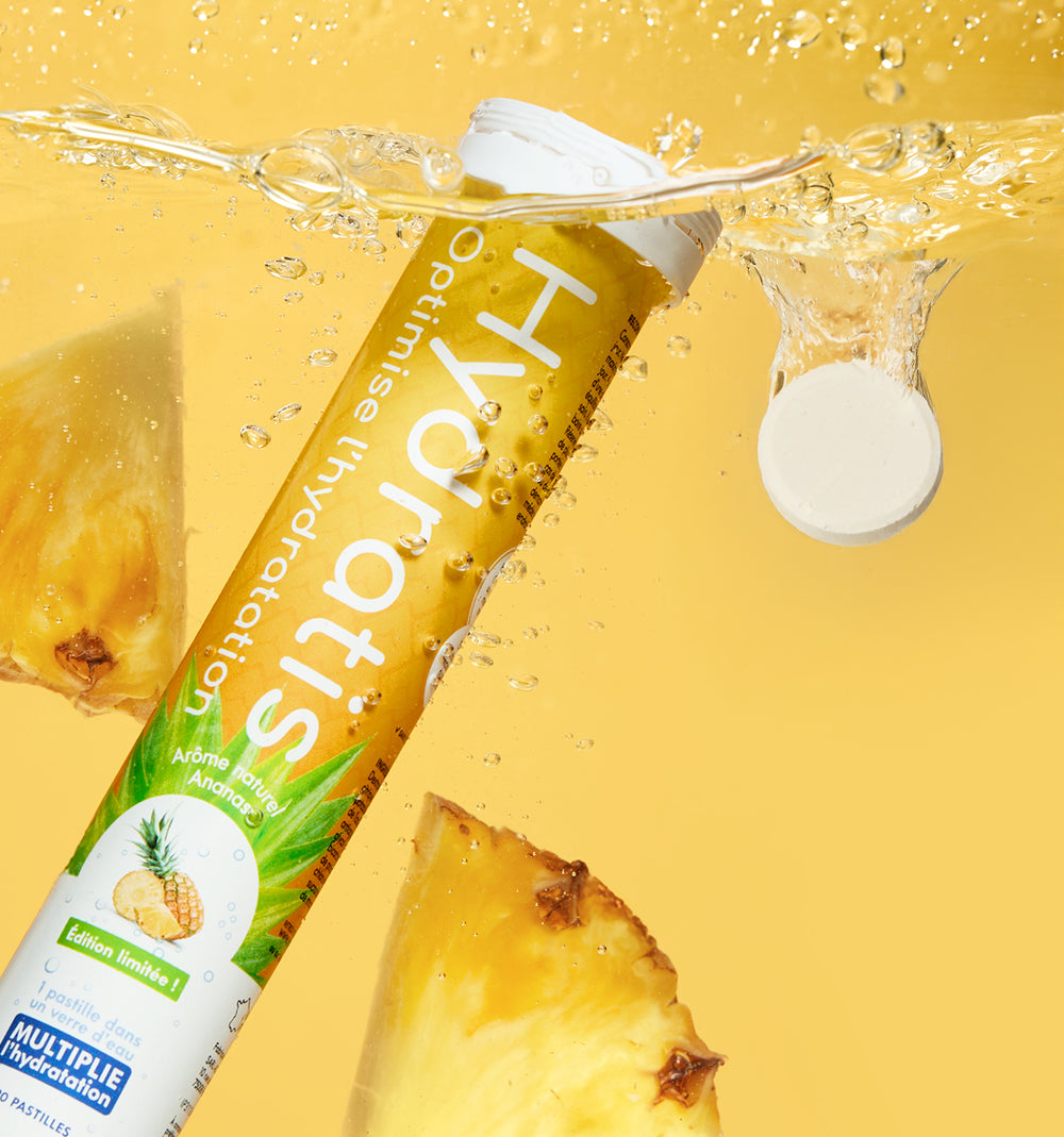 In addition to improving water absorption thanks to its formula based on electrolytes and trace elements, Hydratis lozenges make hydration more enjoyable with natural fruity flavors. Peach, Pineapple, Coconut, Lemongrass Ginger… there's something for every palate! And for those who find water "bland" and don't like its taste, Hydratis helps you drink more regularly.