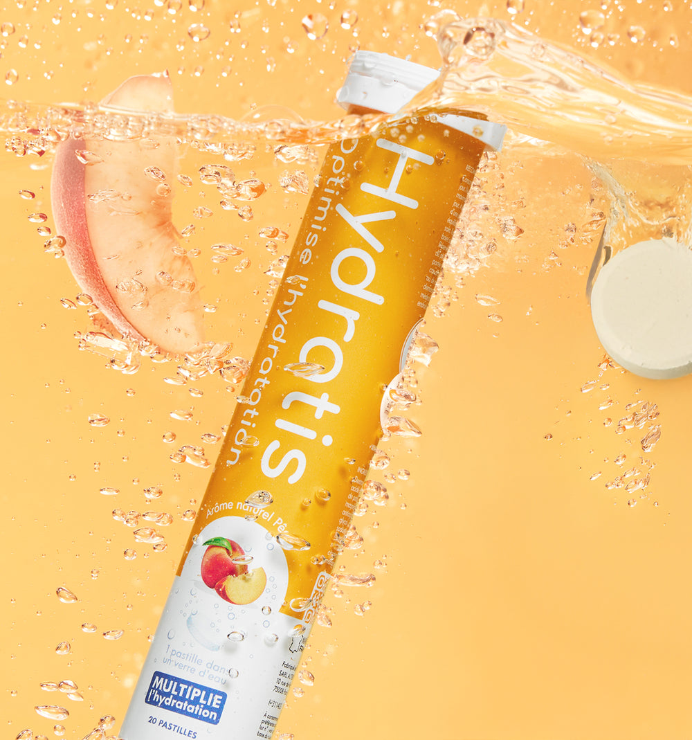 In addition to improving water absorption thanks to its formula based on electrolytes and trace elements, Hydratis lozenges make hydration more enjoyable with natural fruity flavors. Peach, Pineapple, Coconut, Lemongrass Ginger… there's something for every palate! And for those who find water "bland" and don't like its taste, Hydratis helps you drink more regularly.